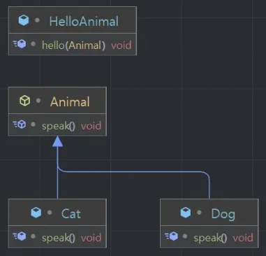 # Cat 클래스는 Animal을 상속받고 Speakable을 구현
