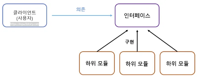 어떤 Class를 참조해서 사용해야하는 상황이 생긴다면, 그 Class를 직접 참조하는 것이 아니라 그대상의 상위 요소(추상 클래스 or 인터페이스)로 참조