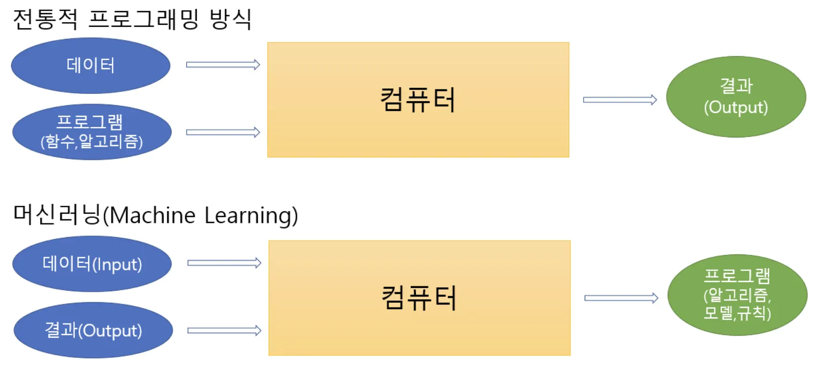 기계에게 어떻게 동작할지 일일이 코드로 명시하지 않고 데이터를 이용해 학습할 수 있도록 하는 알고리즘과 기술을 개발하는 인공지능의 한 분야