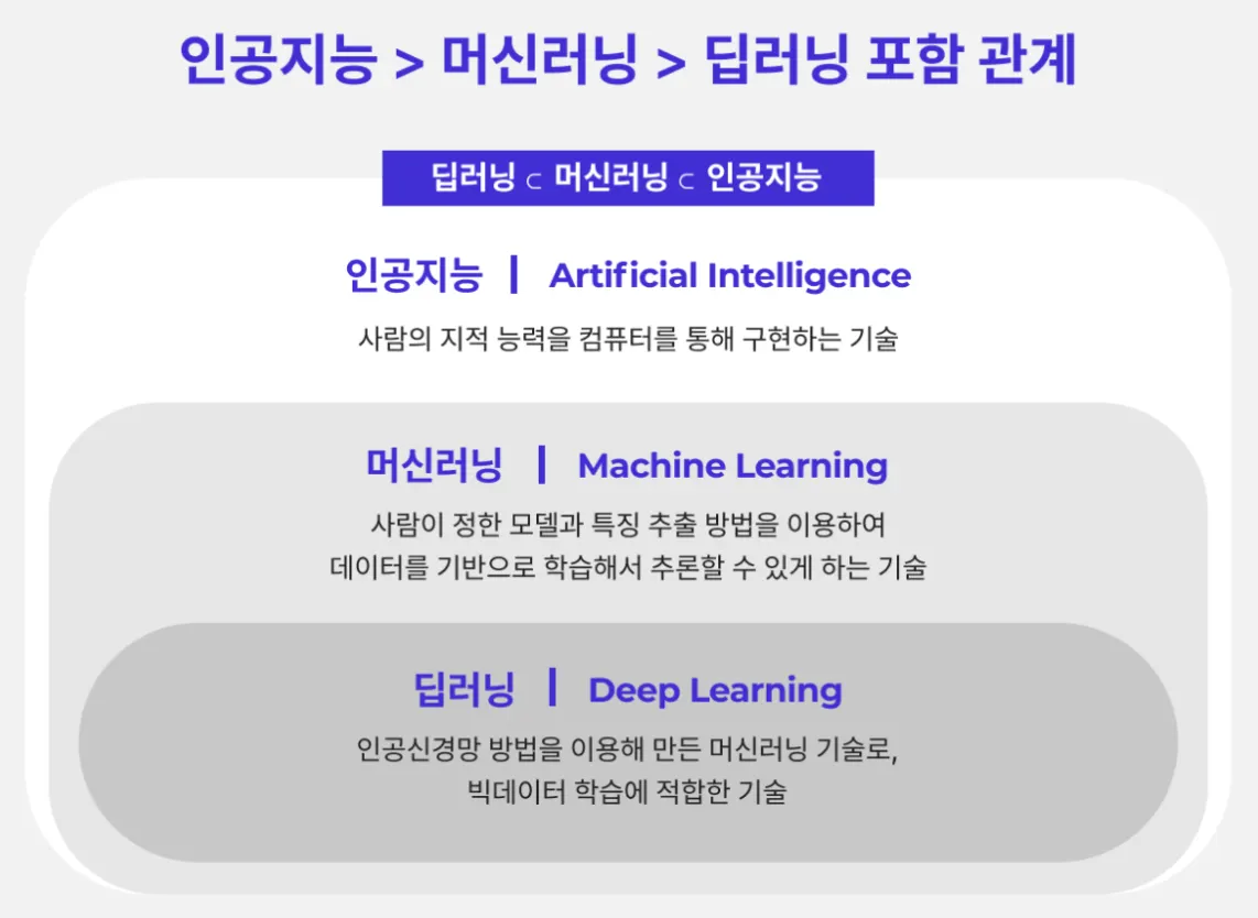 인공지능(AI), 머신러닝(ML), 딥러닝(DL) 포함 관계