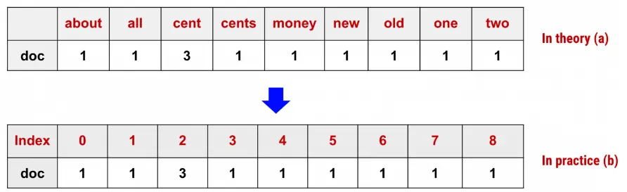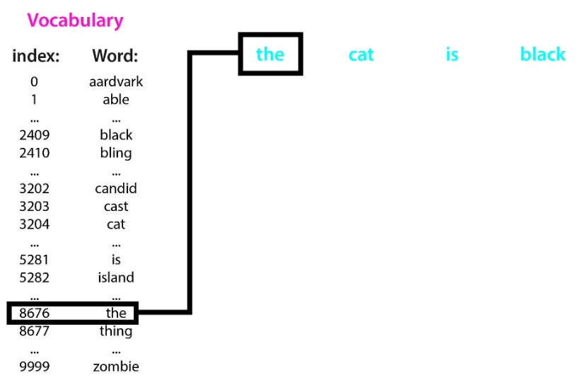 어휘집을 통해 문자를 숫자로 변환 가능