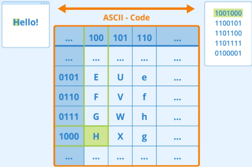 컴퓨터는 이미 텍스트 문자를 ASCII(아스키 코드)또는 UTF-8과 같은 인코딩을 사용하여 화면의 글꼴에 매핑되는 숫자로 나타내고 있음