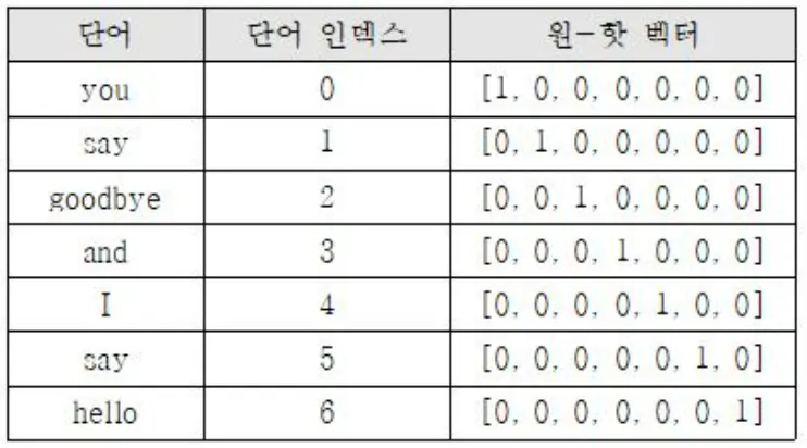 원-핫 인코딩을 통해서 나온 원-핫 벡터들(희소 벡터: sparse vector)