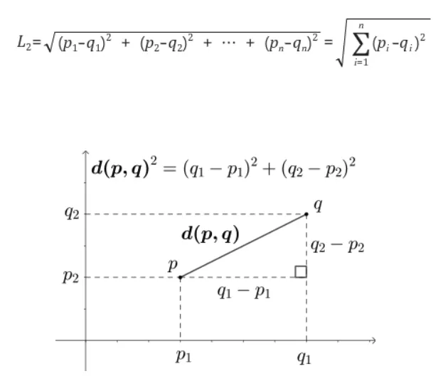 가장 기본적인 거리를 측정하는 유사도 공식