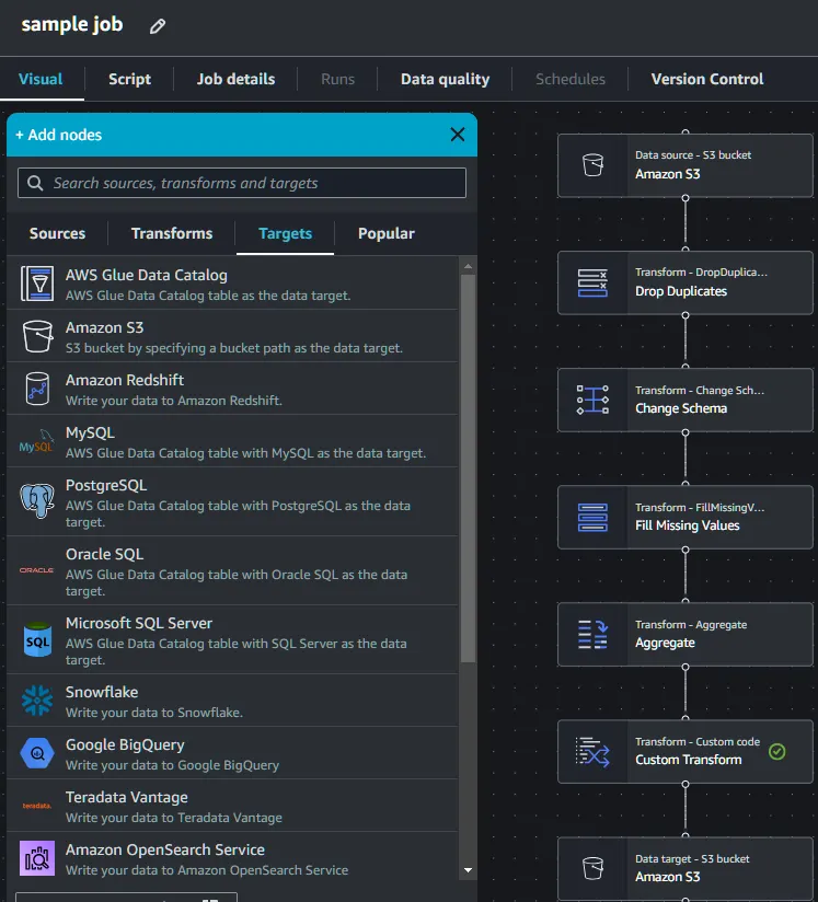 AWS Glue에서는 Script를 Visualizing 하여 설정이 편하고 쉽다.