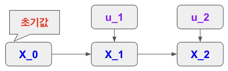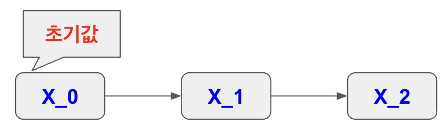 : 첫 번째 시간 단계에서의 상태, 이 값은 바로 이전 상태인 X0에 의해서만 결정