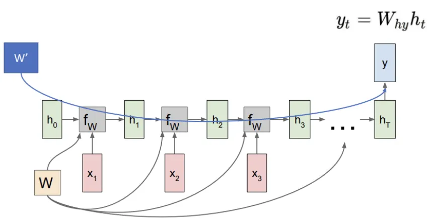 출력 (y1,y2,…,yty_1, y_2, \ldots, y_ty1,y2,…,yt): 각 은닉 상태에서의 출력 값을 통해 특정 작업을 예측하거나 계산한다.
