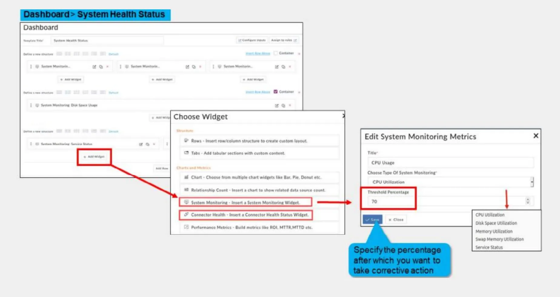 Dashboard → System Health Status → Connector Health Status / Service Status widget