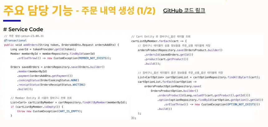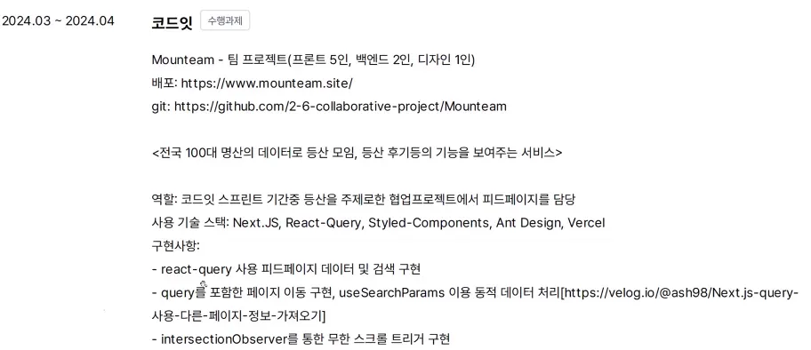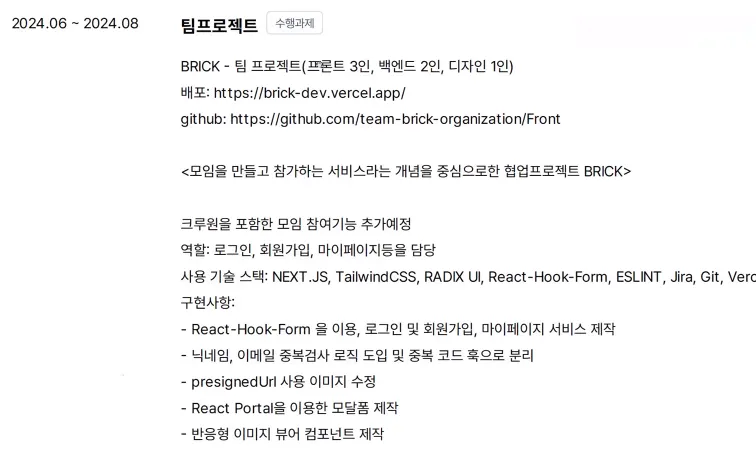 구현사항에선 어떤 걸 사용하고 어떤 걸 구현했는지 어떤 로직을 활용했는지.