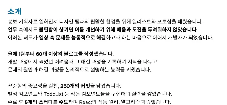 신입 직군의 경우 즉각적인 기여는 어렵다고 해도, 지원자가 지속적으로 배우고 성장하며, 회사에 장기적인 가치를 제공할 수 있다는 점을 전달