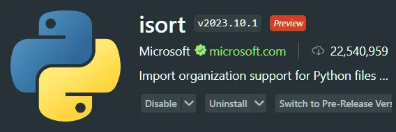 Visual Studio Code에 설치되면 확장 프로그램이 isort를 가져오기 정리 도구로 등록합니다. 키보드 단축키 Shift + Alt + O를 사용하여 가져오기 정리 편집기 작업을 트리거할 수 있습니다. 가져오기가 정리되지 않은 경우 사용 가능한 빠른 수정에서 이 작업을 트리거할 수도 있습니다.