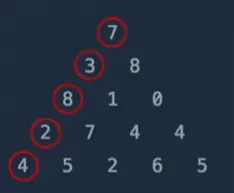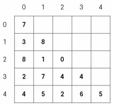 이 때 그림처럼 5줄 짜리 삼각형이면 DFS로 푸는데 지장은 없지만 500줄 5000줄이 될 경우 수행 시간이 굉장히 길어지게 된다.