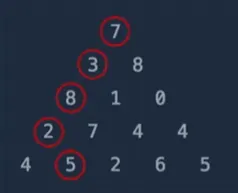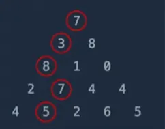 삼각형의 꼭댓기에서 바닥까지 이어지는 경로 중, 거쳐간 숫자의 최댓값을 리턴하는 문제