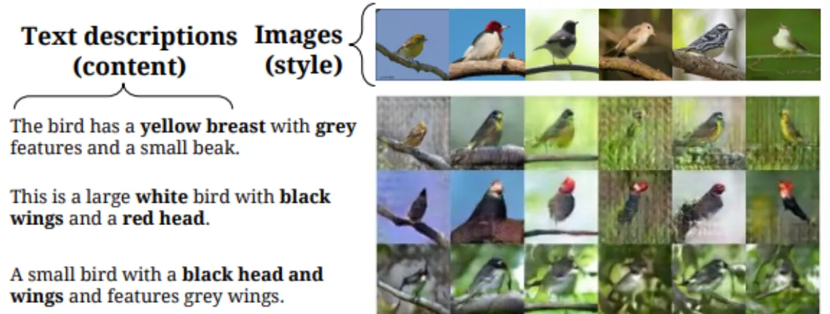 (text에서 이미지로 표현할 만한 feature들을 추출) 이미지를 생성하려면 사물의 특징들을 잘 추출하여 생성하는 것도 중요하지만, 그 외의 정보들(ex.배경이나 자세)들을 생성하는 것도 중요하다.