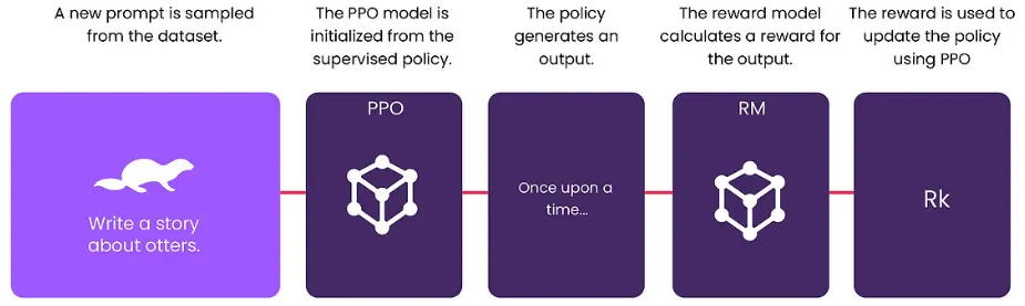 3단계: PPO 강화 학습 알고리즘을 사용하여 보상 모델 정책 최적화