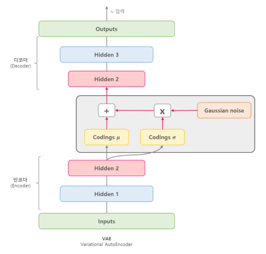 VAE(Variational AutoEncoder)는 기존의 AutoEncoder와 탄생 배경이 다르지만 구조가 상당히 비슷해서 Variational AE라는 이름이 붙은 것