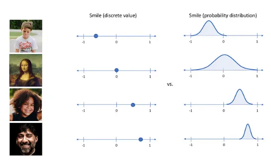 latent vector z는 한국인 눈 모양의 평균 및 분산, 한국인 코 길이의 평균 및 분산, 한국인 머리카락 길이의 평균 및 분산 등등의 정보를 담고 있다고 생각할 수 있다.
