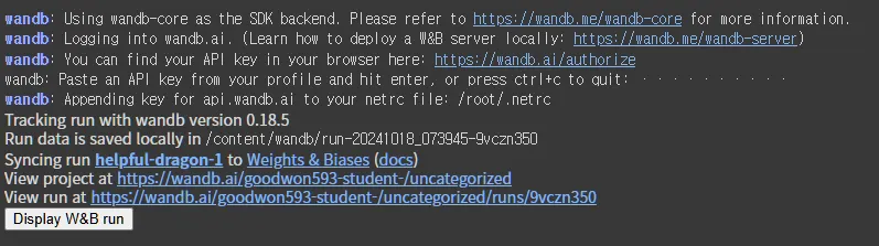 wandb.init() # wandb web 서버와 연결 시켜주는 기능