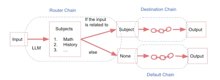 모델은 입력이 특정 주제와 관련 있는지 판단한 후, 관련된 체인으로 데이터를 보낸다.