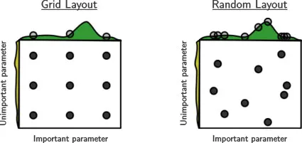 Random Search는 Grid Search에 비해 불필요한 반복 수행 횟수를 대폭 줄이면서, 동시에 정해진 간격(grid) 사이에 위치한 값들에 대해서도 확률적으로 탐색이 가능하므로, 최적 hyperparameter 값을 더 빨리 찾을 수 있는 것으로 알려져 있다.