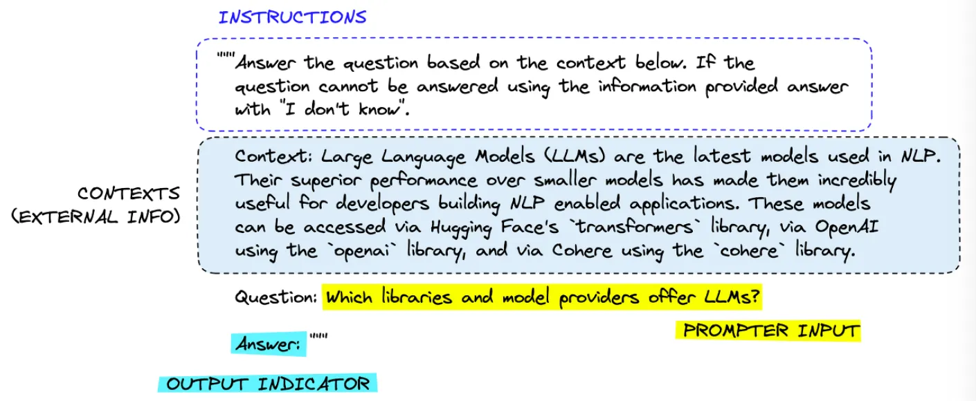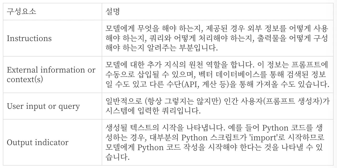 좋은 프롬프트는 일반적으로 두 개 이상의 구성 요소를 사용한다.