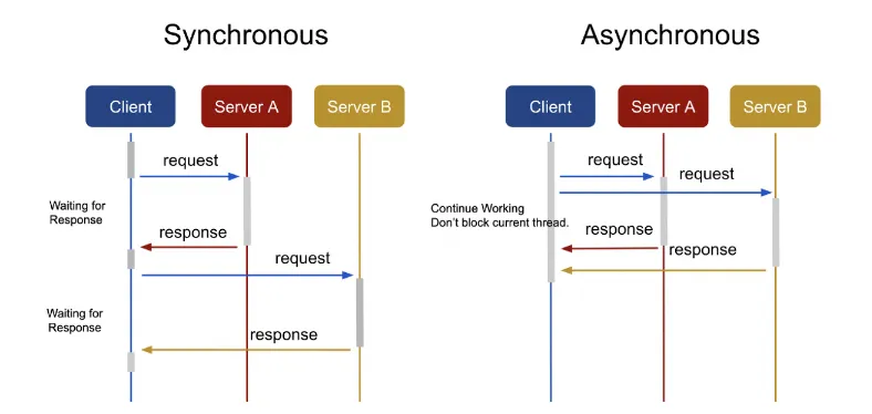 요청과 결과가 한 자리에 동시에 나타나는 것으로 사용자가 서버로 요청을 보냈을 경우 요청에 대한 응답을 리턴받기 전까지 다른 것을 하지 못하고 기다려야 한다.