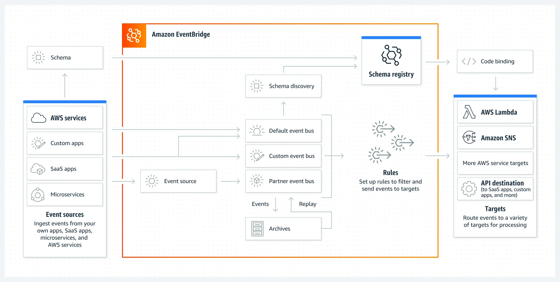 EventBridge는 이벤트 기반 애플리케이션을 개발하고 운영하기 위한 기본 제공 도구를 제공한다.