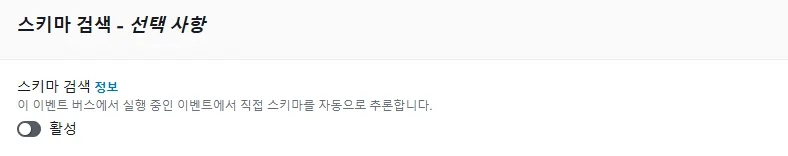 활성화: 스키마 검색을 활성화하면 추후 이벤트 데이터를 쉽게 분석할 수 있도록 이벤트 구조를 자동으로 감지하고 기록한다.