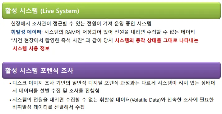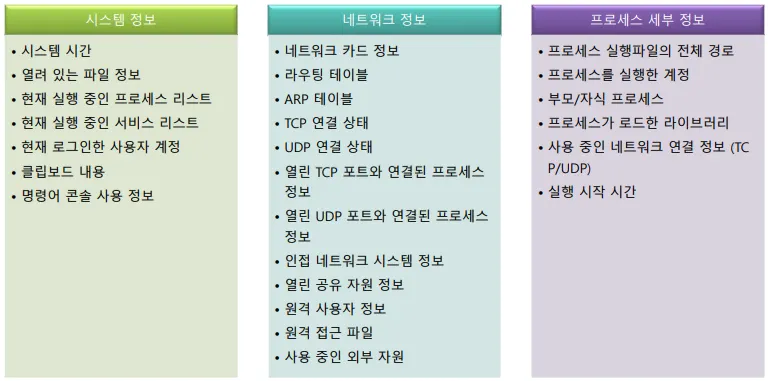 스템의 유형, 규모, 운영체제, 네트워크 구성 등을 파악하여 증거 수집이