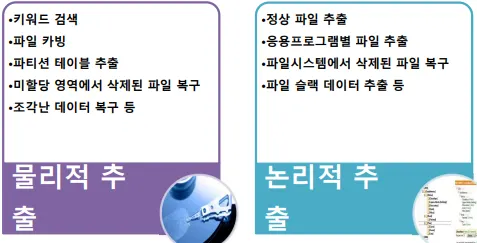 물리적 추출: 파일 시스템과 무관하게 물리적인 매체에서 데이터를 복구