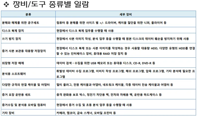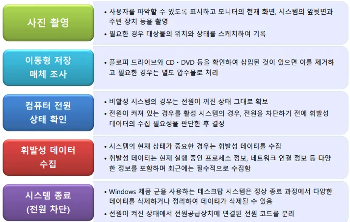 또한 증거물의 누락 및 도난이 없도록 연계보관 원칙을 면밀히 수행하고, 견고한 인증 과정을 거쳐야 함