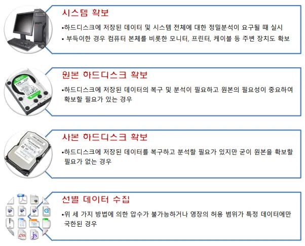 디지털 정보를 포함하고 있는 매체를 증거로서 확보하여, 디지털 증거의