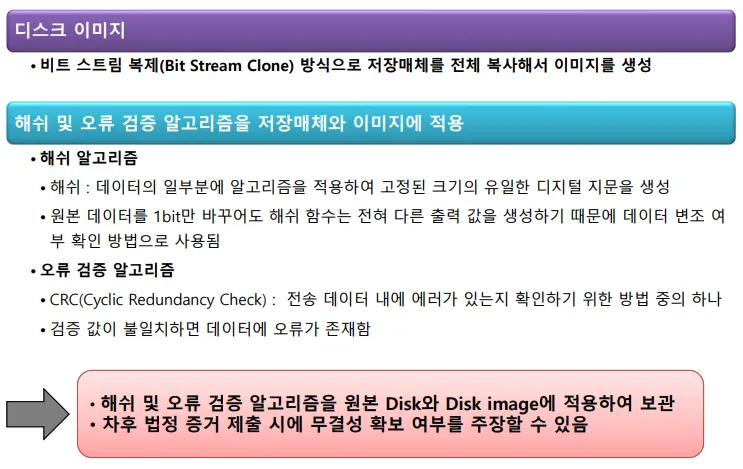 하드디스크의 보존은 증거 확보 단계에서 수행한 디스크 이미징을 통하