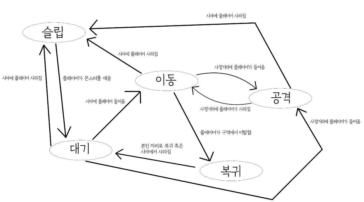 게임 내 NPC(Non-Player Character)의 행동을 제어하기 위해 FSM이 사용되는데,