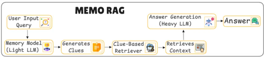 이를 위해 MemoRAG는 '메모리 모듈'을 통해 전체 데이터베이스의 중요한 정보를 기억하고, 이를 기반으로 필요한 단서를 생성하여 최종 답변을 형성하는 데 도움을 준다.
