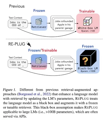 이러한 기존 retrieval-augmented language model 방법론들은 retriever와 함께 붙어있는 LM부분의 내부에 접근이 가능해야만 하며, 이 부분도 retriever와 함께 한번에 train 시켜야 하기 때문에 GPT와 같은, API로만 제공되는 LLM, 즉 black box LM에 대해서는 적용하기 힘들다는 한계가 존재하였다.