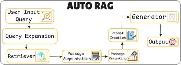 기존 RAG 시스템에서는 쿼리 확장, 검색, 패시지 보강, 패시지 재랭킹, 프롬프트 생성 등 다양한 기술을 수동으로 설정하고 평가해야 한다.