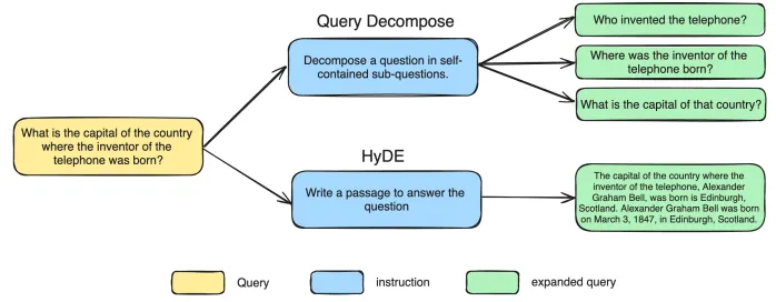 예를 들어, "전화를 발명한 사람이 태어난 나라의 수도는?"이라는 질문을 세 개의 단순한 질문으로 나눈다: "전화를 발명한 사람은 누구인가?", "그 사람은 어디에서 태어났는가?", "그 나라의 수도는 무엇인가?" 이렇게 나누어 검색을 수행하면 각 질문에 대한 정확한 정보를 찾을 수 있다.