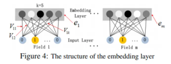 모든 입력 feature들은 Embedding Layer를 거쳐 같은 차원 k로 사상된 dense 벡터로 변환된다다.