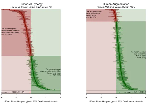 사람과 LLM이 함께 작업하면, LLM끼리만 작업을 했을 때보다 성과가 더 안 좋아지기도 한다.