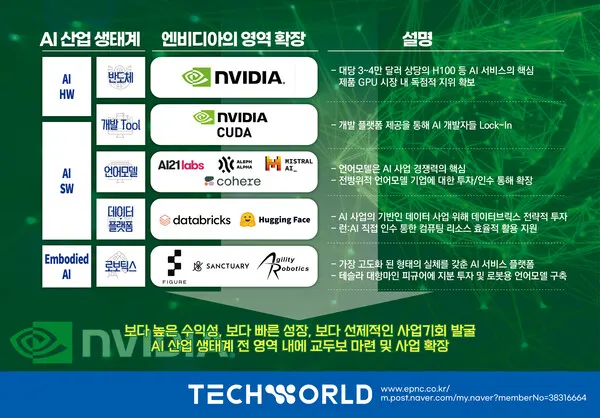 NVIDIA는 기존 반도체 시장 뿐 아니라 Application Frameworks와 상호 연결되어 있는 NVIDIA AI, Omniverse같은 Platform, Acceleration Libraries, System Software 등 다양한 분야로 확장하고 있다.