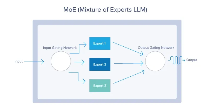 여러 전문가 모델(Experts) 중에서 일부만 선택적으로 활성화하여 학습과 추론을 수행하는 방식