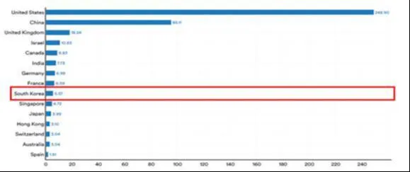 국가별 민간 부문 인공지능 투자 누적금액(단위: 10억달러). 자료: 美 스탠퍼드 대학교