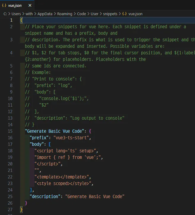 "prefix": "vue3-ts-start", // 스니펫 이름