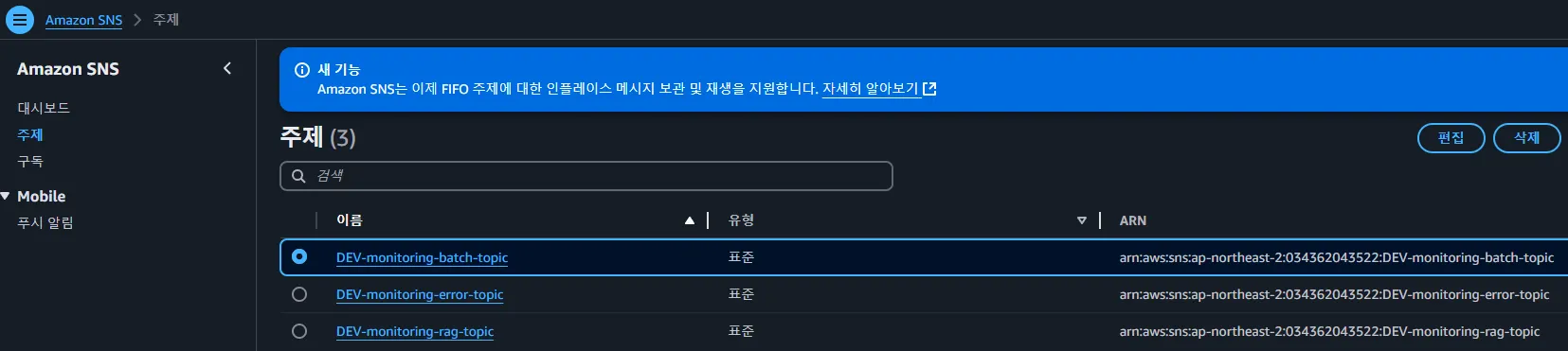분산 메시징과 알림 전송을 위한 완전관리형 서비스
