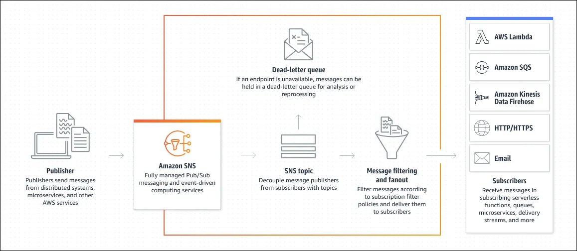 SNS는 다양한 프로토콜을 지원하며, 이를 통해 이메일, SMS, 모바일 푸시 알림, HTTP/HTTPS 엔드포인트 등 다양한 방법으로 알림을 전송할 수 있다.