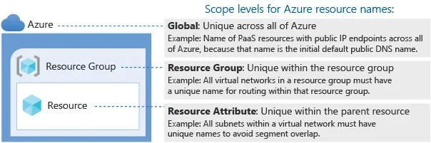 다이어그램 2: Azure 리소스 이름의 범위 수준