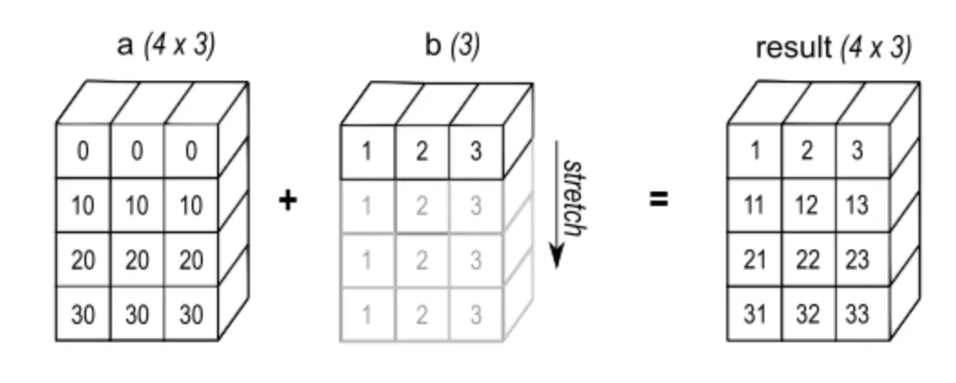 배열의 모양이 다르더라도 어떠한 조건이 만족했을 때 작은 배열을 자동으로 큰배열 크기에 맞춘다.
