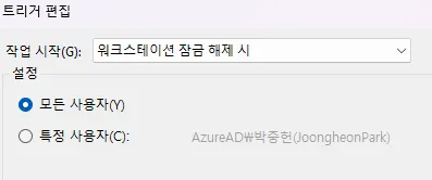 Workstation unlock 트리거 대신, 보안 로그 이벤트(Unlock=4801)를 기반으로도 구성할 수 있다.