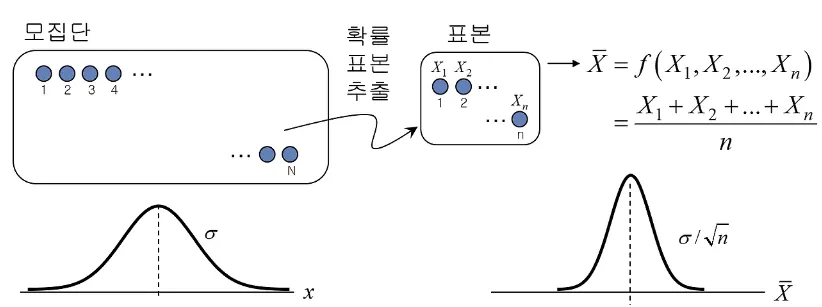 모집단: 평균이 이고 분산이 인 모집단이 있다고 하자.